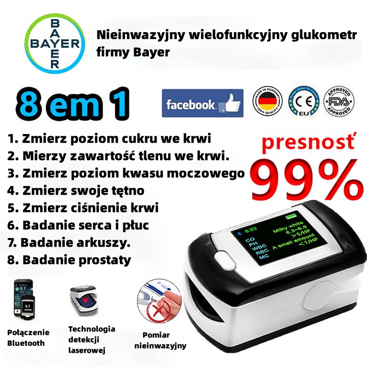 Pomiar w 5 sekund / dokładność 99% / bezbolesny / bez konieczności pobierania krwi